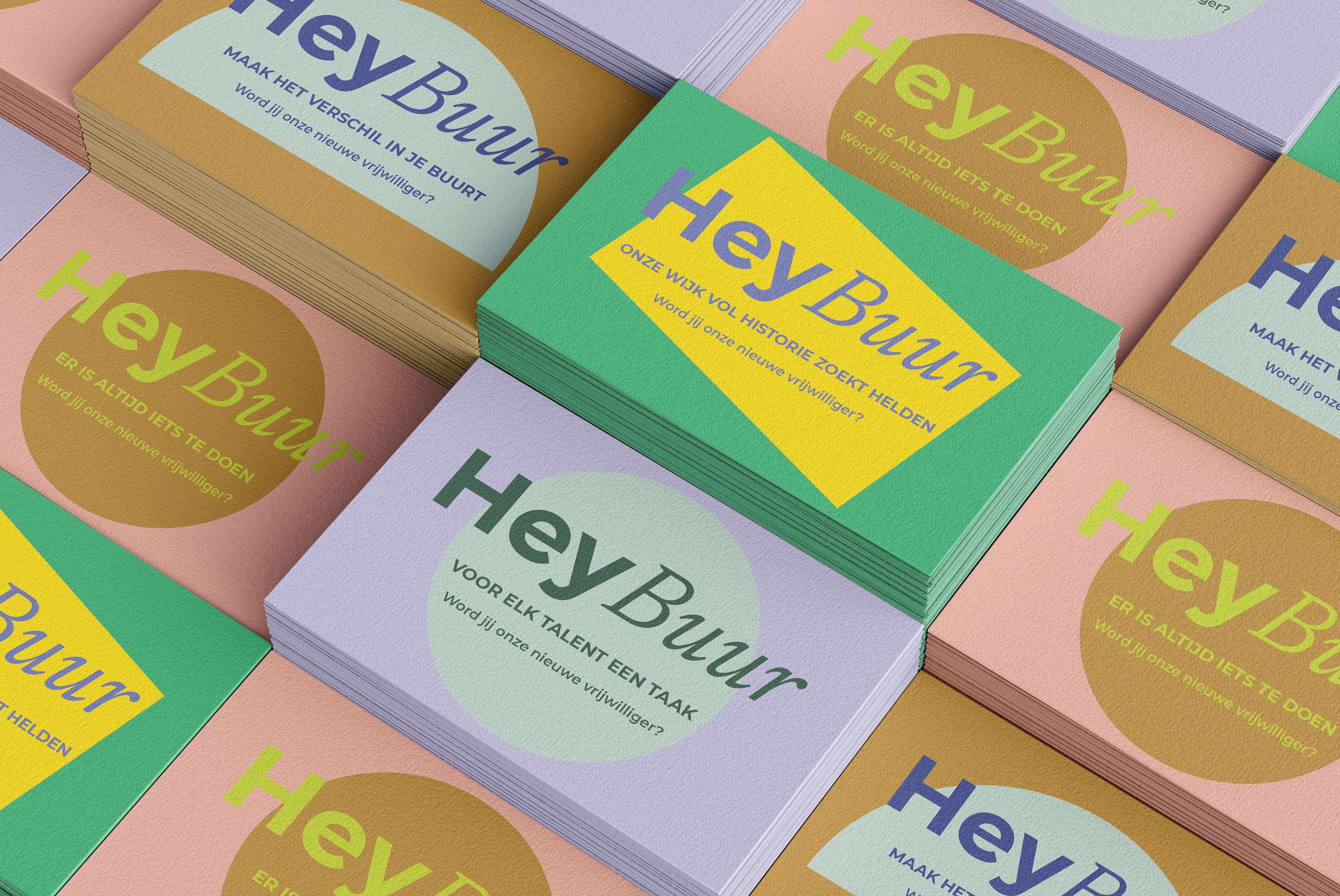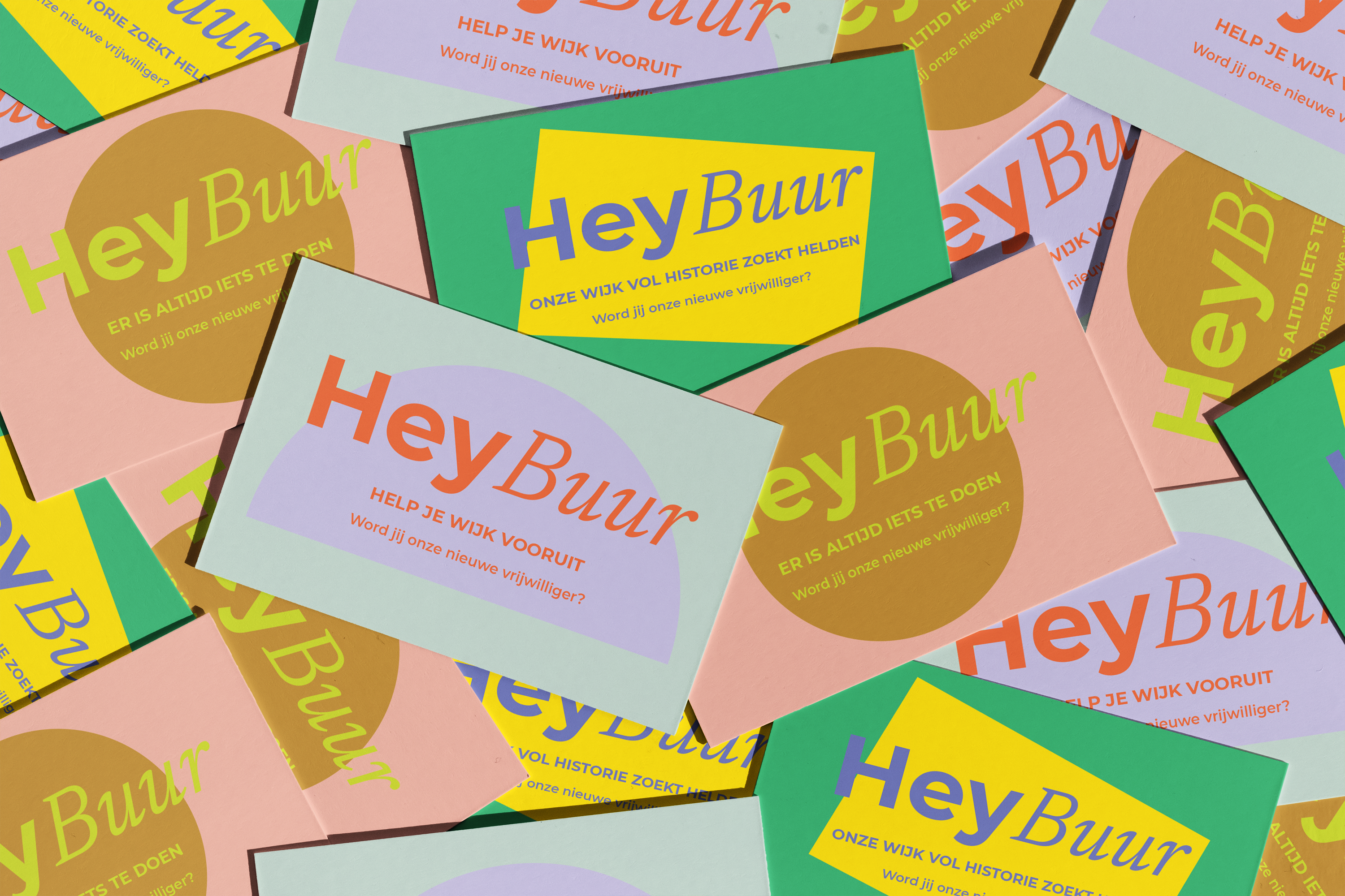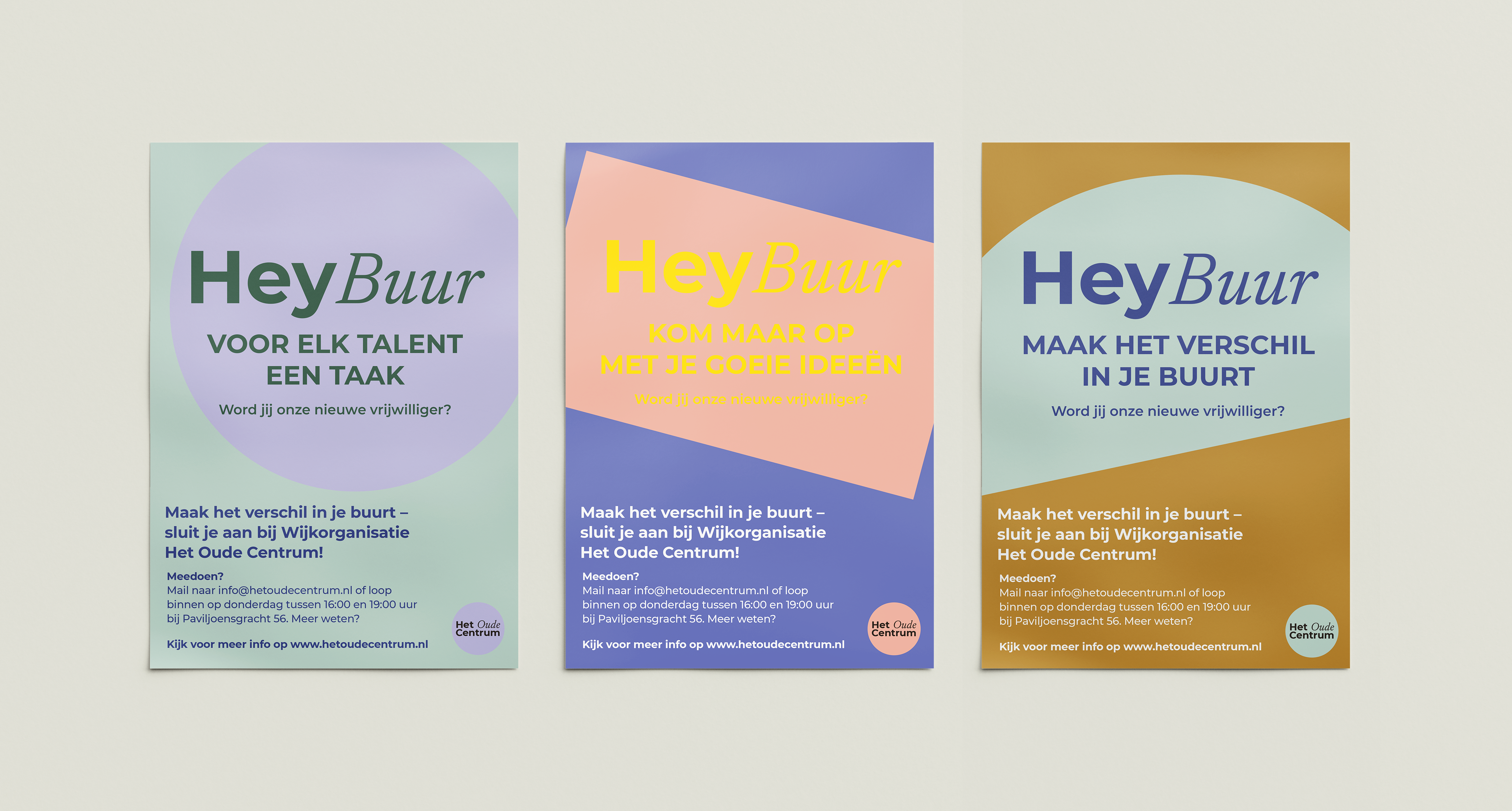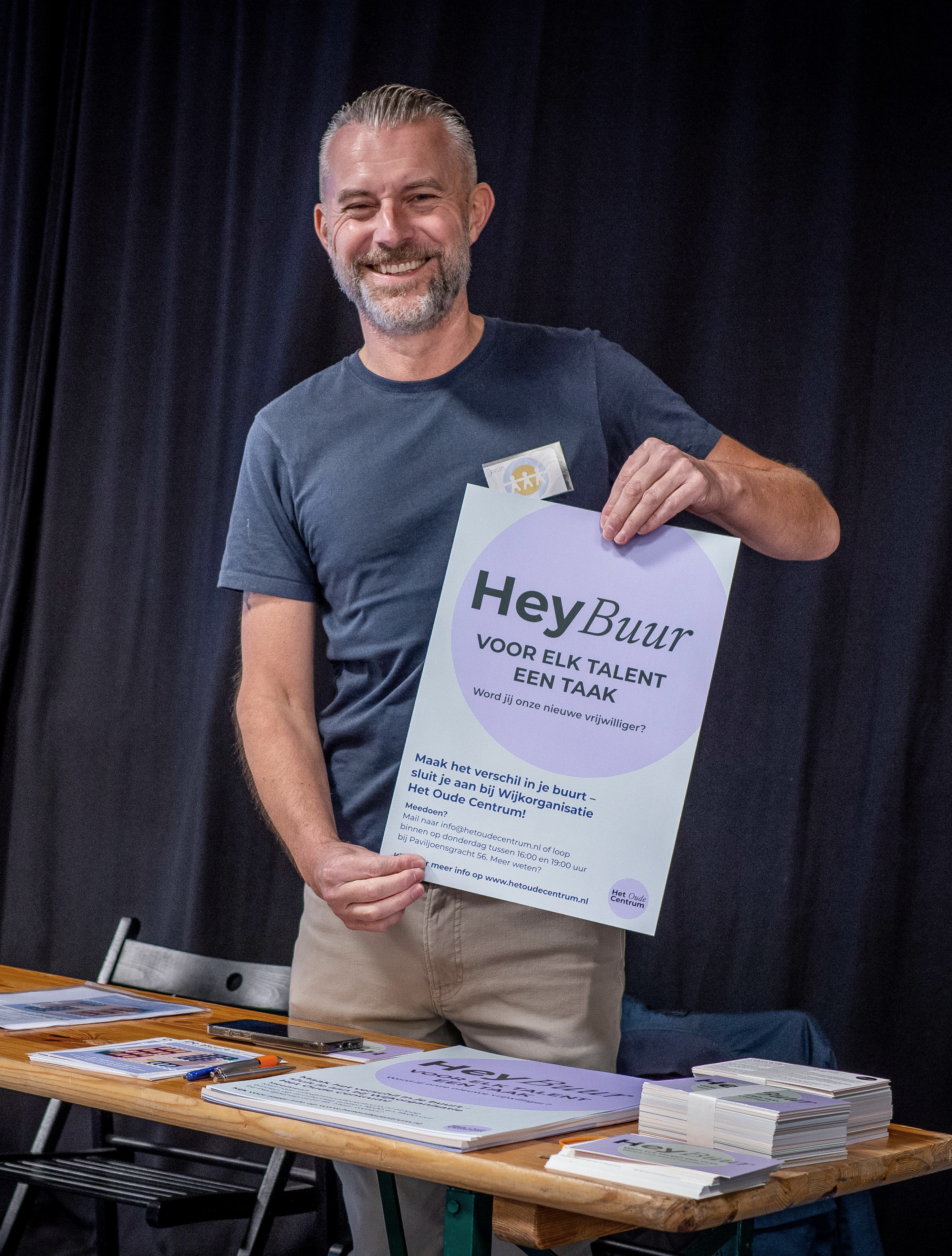 Voor de vrijwilligerscampagne zijn nieuwe posters en ansichtkaarten ontworpen met één duidelijke boodschap: Hey Buur. De kaarten vielen bij iedereen in het oude centrum op de mat, als een uitnodiging om iets te doen voor je eigen buurt. Misschien wil je helpen bij een evenement, meedenken in het bestuur of heb je gewoon een goed idee voor de wijk. De campagne sluit goed aan bij de herkenbare stijl van Het Oude Centrum.